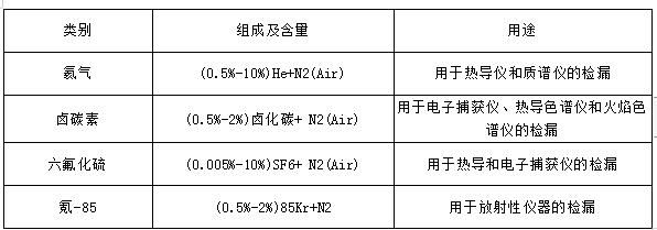 檢漏(報(bào)警)混合氣:用于特殊檢漏的混合氣,其品種規(guī)格多。常見(jiàn)類(lèi)別有氦氣、鹵碳素、六氟化硫和氪-85等。